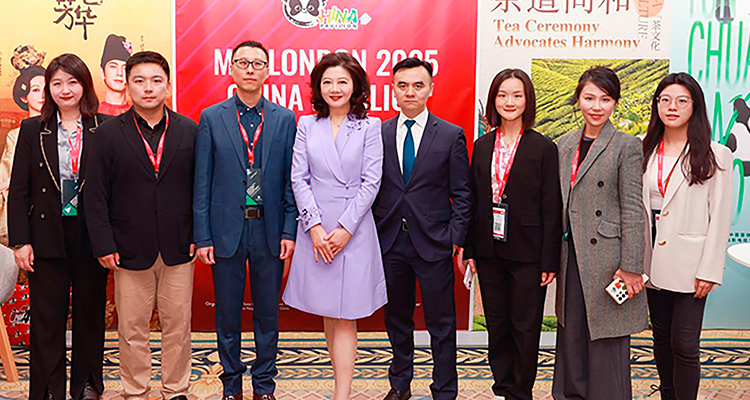 The Jiangsu Broadcasting Corporation (JSBC) team at the China Pavilion cocktail: Zuo Xuefei, Qin Xiaoming, director of international distribution and acquisitions, Wang Pan, Qiu Yuanyuan, president, Li Hanchun, Wei Li, Wang Yi, Shi Huixuan
