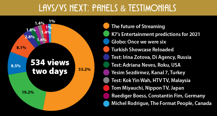 As the genre pie shows, drama and telenovela are first selections, corresponding with the long series supremacy in the type of contents. But then two non-fiction options follow at the pie: kids & family Animation and documentaries. They gain vs. K&F live action or factual, for instance. And later at the pie, Thriller/suspense confirms that is a very good genre in the pandemic, because it travels well to all territories. Reality shows and comedies complete the main map.
